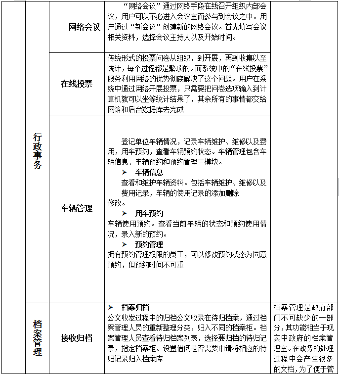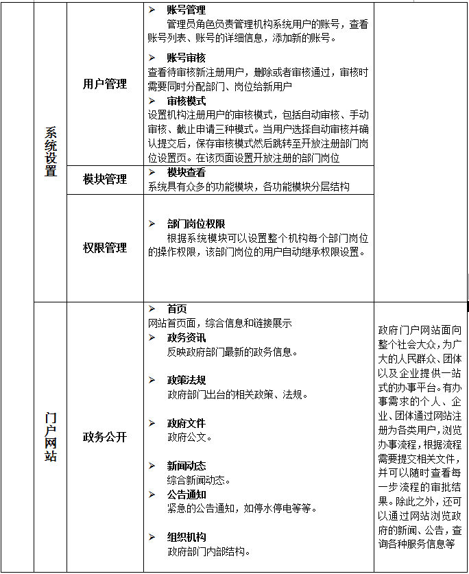 首頁、政(zheng)(zheng)(zheng)務(wu)資訊、政(zheng)(zheng)(zheng)策法規、政(zheng)(zheng)(zheng)府文(wen)件、新聞動態、公(gong)告通知(zhi)、組織(zhi)機(ji)構、服務(wu)導(dao)航、信(xin)息查(cha)詢、在線辦理(li)(li)(在線辦事(shi)流(liu)程維(wei)護、在線辦事(shi)接納(na))、在線咨詢、領導(dao)信(xin)箱(xiang)、投(tou)訴舉報、熱點(dian)調查(cha)、政(zheng)(zheng)(zheng)務(wu)論(lun)壇 學(xue)生端后臺(tai):通訊錄、日程安排(pai)、便箋、單位工(gong)作(zuo)計劃(hua)、個(ge)人工(gong)作(zuo)計劃(hua)、發文(wen)管(guan)(guan)(guan)理(li)(li)、收(shou)文(wen)管(guan)(guan)(guan)理(li)(li)、遠程收(shou)發、呈批管(guan)(guan)(guan)理(li)(li)、公(gong)文(wen)設置、網絡會議(yi)、在線投(tou)票、車輛管(guan)(guan)(guan)理(li)(li)、接收(shou)歸檔(dang)、管(guan)(guan)(guan)理(li)(li)檔(dang)案、檔(dang)案借閱、組織(zhi)結構管(guan)(guan)(guan)理(li)(li)、員工(gong)管(guan)(guan)(guan)理(li)(li)、考(kao)勤管(guan)(guan)(guan)理(li)(li)、用戶管(guan)(guan)(guan)理(li)(li)、模塊(kuai)管(guan)(guan)(guan)理(li)(li)、權(quan)限管(guan)(guan)(guan)理(li)(li)