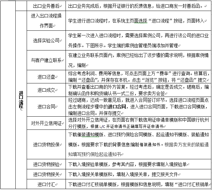 4.進口(kou)(kou)(kou)(kou)流(liu)程包含選擇實驗公(gong)司、與客(ke)戶(hu)建立(li)聯系(xi)、出(chu)口(kou)(kou)(kou)(kou)報價(jia)及發(fa)盤、出(chu)口(kou)(kou)(kou)(kou)還價(jia)核(he)算(suan)(suan)及發(fa)盤、出(chu)口(kou)(kou)(kou)(kou)成交(jiao)核(he)算(suan)(suan)、出(chu)口(kou)(kou)(kou)(kou)合同簽訂、信用證審核(he)、信用證修改函、出(chu)口(kou)(kou)(kou)(kou)貨運(yun)訂艙、出(chu)口(kou)(kou)(kou)(kou)貨物(wu)投保、出(chu)口(kou)(kou)(kou)(kou)貨物(wu)報檢、出(chu)口(kou)(kou)(kou)(kou)貨物(wu)報關、出(chu)口(kou)(kou)(kou)(kou)制單(dan)結匯(hui)和(he)出(chu)口(kou)(kou)(kou)(kou)業務善(shan)后等(deng)內容。軟(ruan)件內容注重實務操(cao)作(zuo),它針對外貿(mao)業務的實踐性(xing)和(he)適時性(xing),通(tong)過(guo)各(ge)種案例(li)加深對國際(ji)貿(mao)易各(ge)種慣例(li)及法律法規、業務規范(fan)的理(li)解和(he)記憶。