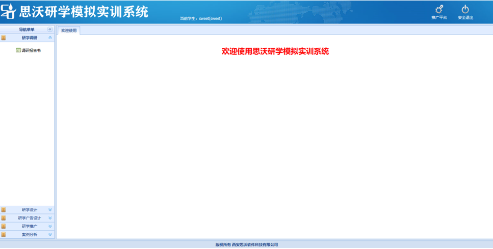 思沃研(yan)學(xue)(xue)(xue)(xue)(xue)模擬實訓(xun)系統分(fen)(fen)為管理員,教師,學(xue)(xue)(xue)(xue)(xue)生(sheng)三種角(jiao)色,功能包括推(tui)廣(guang)(guang)平臺、首頁(ye),知(zhi)識庫(ku),研(yan)學(xue)(xue)(xue)(xue)(xue)推(tui)廣(guang)(guang),圖文結合廣(guang)(guang)告,媒(mei)體(ti)推(tui)送(song)廣(guang)(guang)告,研(yan)學(xue)(xue)(xue)(xue)(xue)調(diao)研(yan),研(yan)學(xue)(xue)(xue)(xue)(xue)設(she)計等。學(xue)(xue)(xue)(xue)(xue)生(sheng)通過(guo)模擬實訓(xun)體(ti)驗從(cong)研(yan)學(xue)(xue)(xue)(xue)(xue)內容調(diao)研(yan)、研(yan)學(xue)(xue)(xue)(xue)(xue)路(lu)線設(she)計、研(yan)學(xue)(xue)(xue)(xue)(xue)核心價值發掘(jue)、研(yan)學(xue)(xue)(xue)(xue)(xue)媒(mei)體(ti)網(wang)絡(luo)推(tui)廣(guang)(guang)等一系列工作內容。 研(yan)學(xue)(xue)(xue)(xue)(xue)軟件包含案(an)例分(fen)(fen)析(xi),點(dian)評(ping),研(yan)學(xue)(xue)(xue)(xue)(xue)線路(lu)設(she)計,團隊類(lei)(lei)(lei)(lei)型(xing)(xing)(xing),機型(xing)(xing)(xing),小交通標(biao)準,出入(ru)境口岸(an),匯(hui)率維(wei)(wei)護,酒(jiu)(jiu)店類(lei)(lei)(lei)(lei)型(xing)(xing)(xing),研(yan)學(xue)(xue)(xue)(xue)(xue)類(lei)(lei)(lei)(lei)型(xing)(xing)(xing)知(zhi)識庫(ku)類(lei)(lei)(lei)(lei)型(xing)(xing)(xing),案(an)例類(lei)(lei)(lei)(lei)型(xing)(xing)(xing),航(hang)空公司,線路(lu)區域,團隊等級(ji),住宿標(biao)準,大交通標(biao)準,門票標(biao)準,餐飲(yin)標(biao)準,導(dao)游(you)證(zheng)類(lei)(lei)(lei)(lei)別(bie),酒(jiu)(jiu)店等級(ji),客(ke)戶行業分(fen)(fen)類(lei)(lei)(lei)(lei),客(ke)戶等級(ji)分(fen)(fen)類(lei)(lei)(lei)(lei),客(ke)戶關系深度,地接車(che)等級(ji),客(ke)戶接受程(cheng)度,國家維(wei)(wei)護,省份維(wei)(wei)護,城市維(wei)(wei)護,景點(dian)類(lei)(lei)(lei)(lei)型(xing)(xing)(xing),學(xue)(xue)(xue)(xue)(xue)生(sheng)可以進行系統的模擬學(xue)(xue)(xue)(xue)(xue)習(xi)。