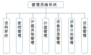 管(guan)理(li)(li)員端系統(tong)主要由資(zi)料(liao)修改(gai)、教師管(guan)理(li)(li)、沙(sha)盤類(lei)別(bie)管(guan)理(li)(li)、沙(sha)盤管(guan)理(li)(li)、設備目(mu)錄管(guan)理(li)(li)、設備分類(lei)管(guan)理(li)(li)、設備管(guan)理(li)(li)等幾大模塊組(zu)成。